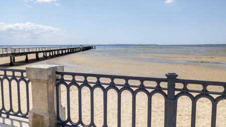 pontoon and low tide beach Andernos les Bains France in arcachon basin bay southwest france