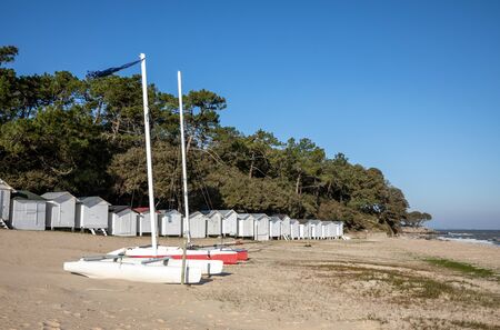 White cabins on the Sableaux beach in Noirmoutier en l'île (Vendee, France)