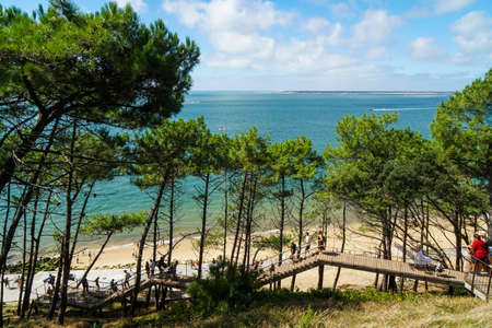 La Teste-de-Buch - 08/25/2020: walkway towards the Pyla dune surrounded by pines