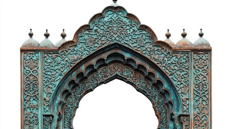 Detail of an ornate archway with intricate tile work and calligraphy.