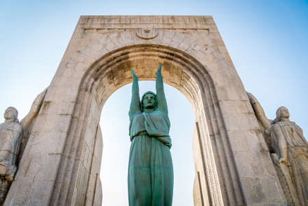 Detail of the the Triumphal Arch of Augusta Street in Lisbon, Portugal