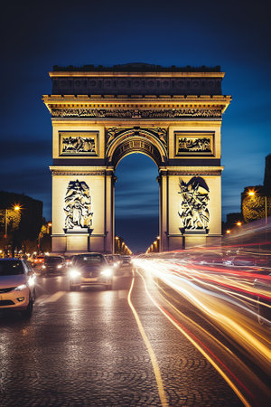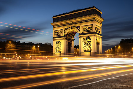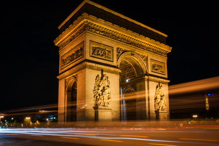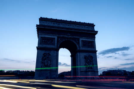 Paris landmark - Arc de Triomphe at night. Long Exposure