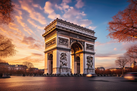 Arc de Triomphe at sunset in Paris, France, Europe, Arc de Triomphe in Paris afternoon, AI Generated