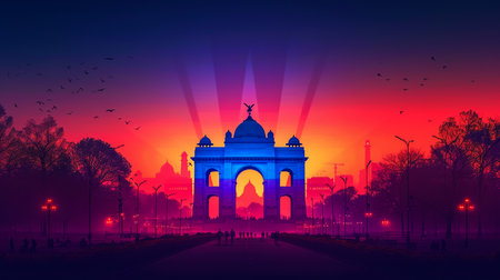 Silhouette of India Gate against amazingly beautiful sunset and sky