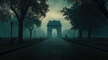 3D Render India Gate at New Delhi. 1920s triumphal arch and war memorial. 3D illustration.