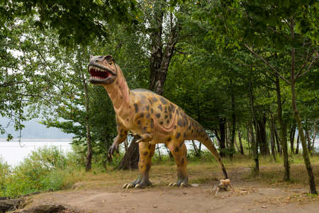 Lake Solina, Poland - 19th August 2020: Portrait of dinosaur imitation side view