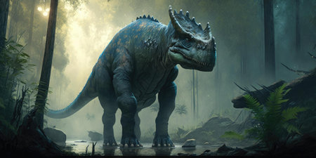 Triceratops dinosaur in the forest.