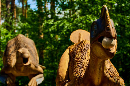 Russia, Moscow - September 29, 2018: Dinosaur in the park in sunny weather
