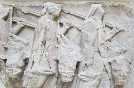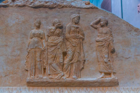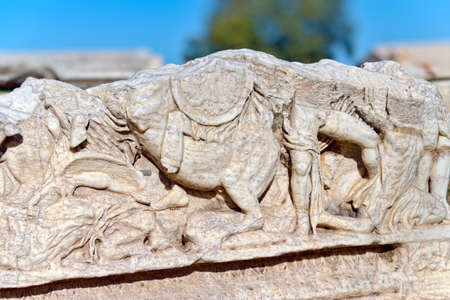 Roman sarcophagus relief detail in Ephesus (Efes) from Roman time in Turkey.