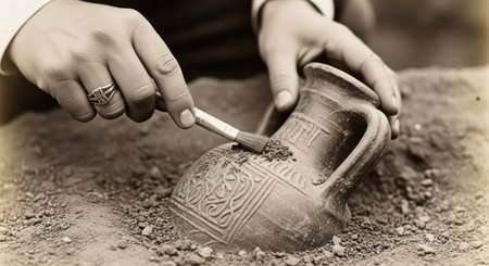Archaeologist uncovers ancient ceramic pottery artifact in excavation site