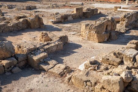 House of Orpheus with thermae or bath in Paphos Archaeological Park, Cyprus. Panorama of Ancient Greek ruins in Kato district in old city. This place is landmark of Paphos. History concept.