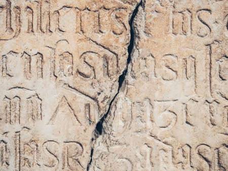close-up of stone engraved symbols in theatre, created with generative ai