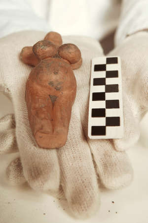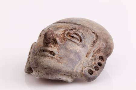 antique amulet from Valdivia culture representing an abstract beeing on white background. Part of La Tolita region, north of Ecuador in Esmeralda province.