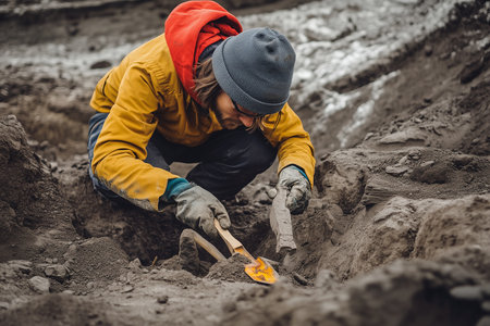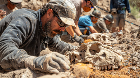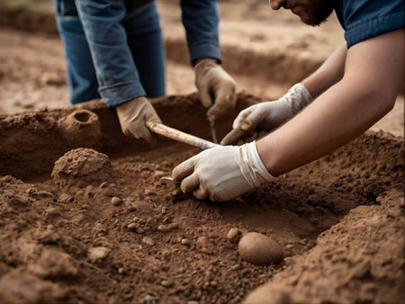 Dedicated archaeologists engage in a focused excavation, unearthing historical artifacts from the earth. Their work highlights the importance of preserving our past.