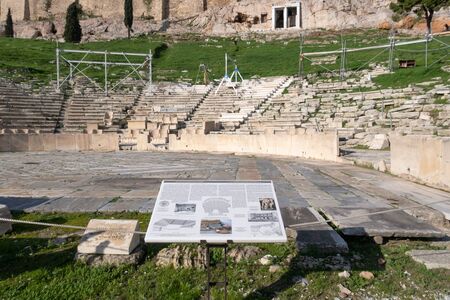 Athens, Greece - Dec 20, 2019: Theatre of Dionysus Eleuthereus on the slops of the Acropolis, Athens,Greece