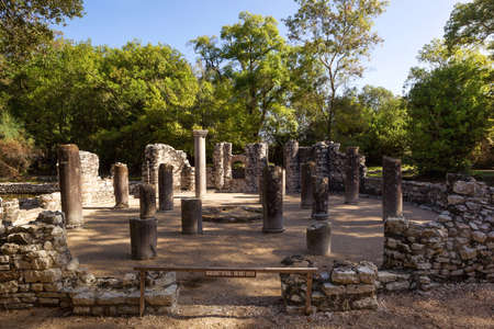 Butrint/ Albania October 12, 2019. The Baptistery dated from the 6th century at Butrint, Albania.