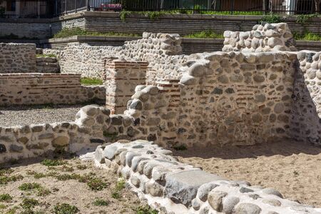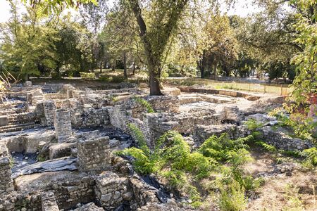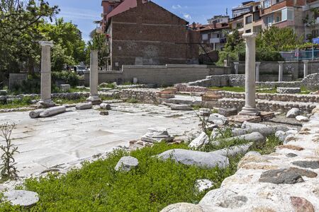SANDANSKI, BULGARIA - APRIL 4, 2018: Ruins of Episcopal complex with basilica in town of Sandanski, Bulgaria