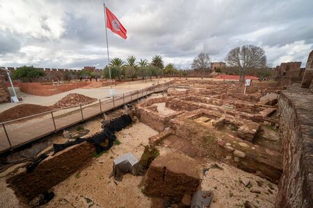 Silves, Portugal - January 23, 2020: All but ruins are left of the interior of the Silves Castle