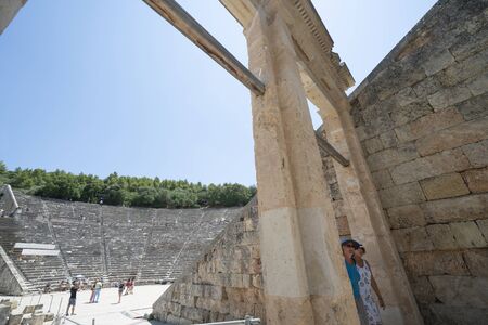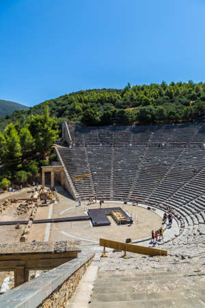 EPIDAURUS, GREECE, SEPTEMBER 12, 2017: Ancient theater of Epidaurus, September 12, 2017, in Argolis, peloponnese, Greece