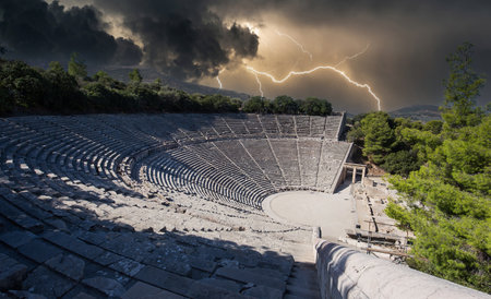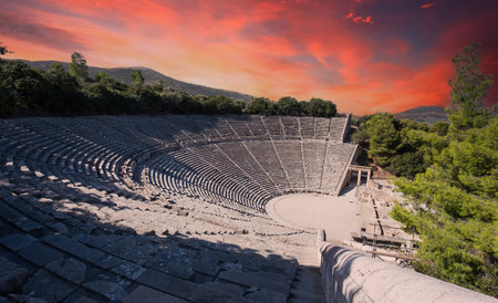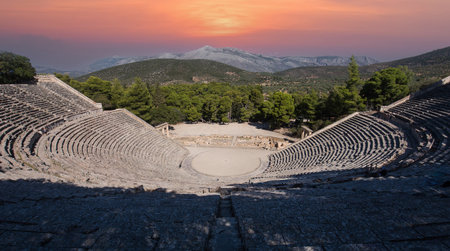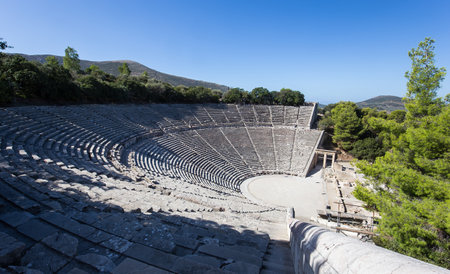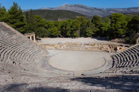 panorama of the famous construction of the ancient theatre of epidaurus