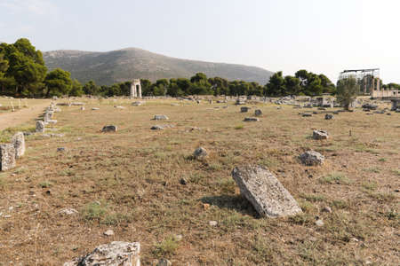 The archaeological site of the Sanctuary of Asclepius with the ruins of Asclepius Temple, Epidavros, Greece.