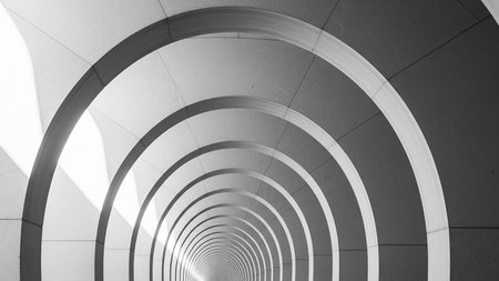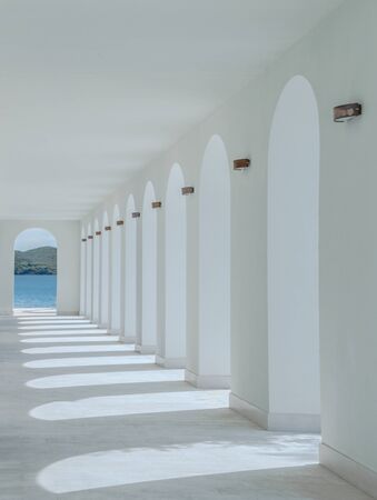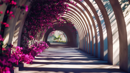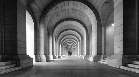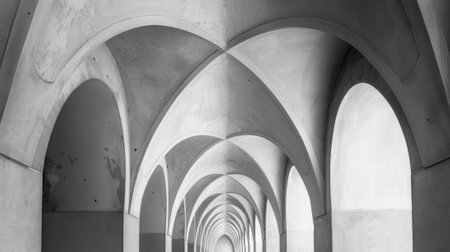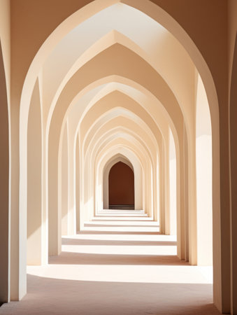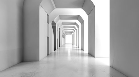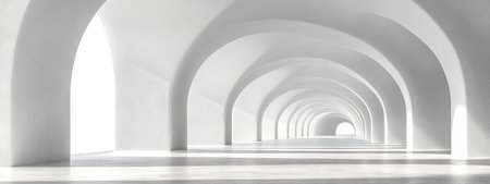 Arched corridor in a minimalist architectural style, the corridor is composed of a series of.