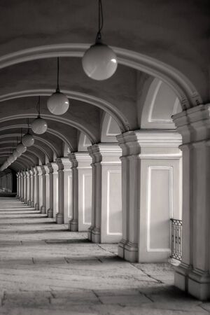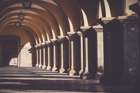 Long row of colonnade columns and Arched architectural perspective in