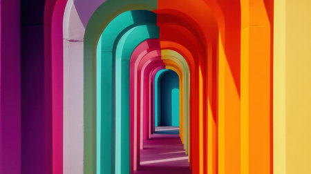 Colorful arches stretch into the distance, forming a captivating pattern of architecture and design