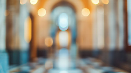 Blurred museum interior with artistic lighting and a spacious ambiance.