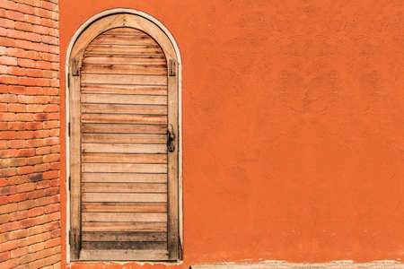 The vintage style concept of the background of the building wall with doors and trees is an element, the architecture of the building that blends perfectly with the composition of the picture and the beautiful colors.