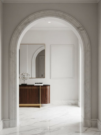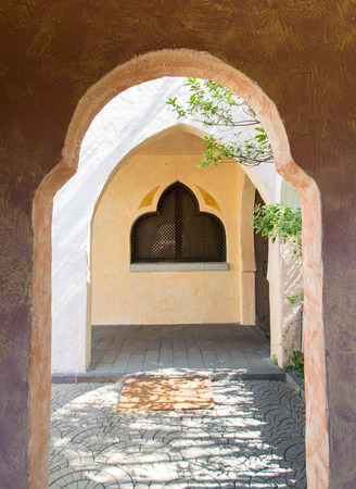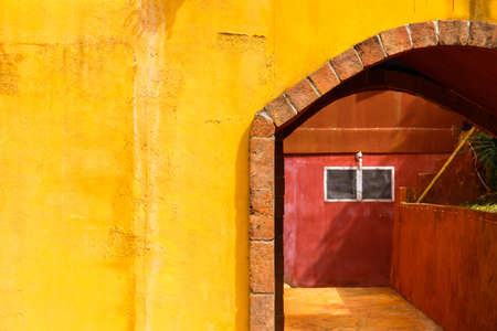Colorful architectural arch entrance with isolated space inside. Architectural mockup