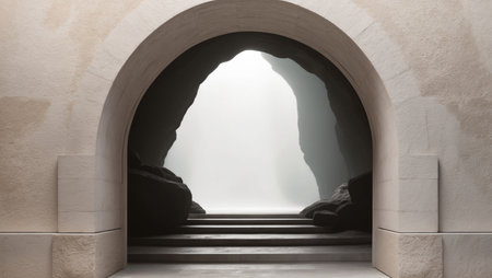 AI Generated. Historic Stone Archway Corridor with Natural Light