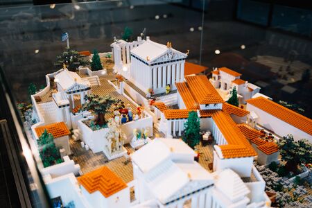 Athens, Greece - Dec 22, 2019: lego miniatur of Acropolis, Exhibition in The Acropolis Museum in Athens, Greece, Europe