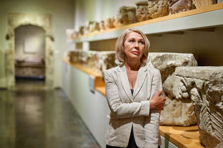 Woman exploring medieval expositions in museum