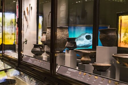 SOMOGYVAR, HUNGARY - NOVEMBER 01, 2017: Historical relics at exhibition at National Monument of St. Laszlo