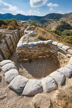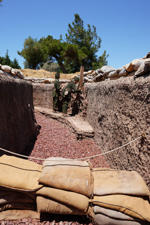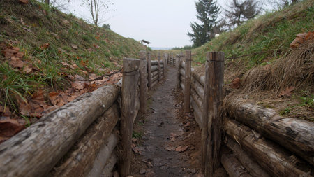 historical battlefield and learning environment, ancient trench pathway with educational focus setup