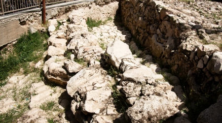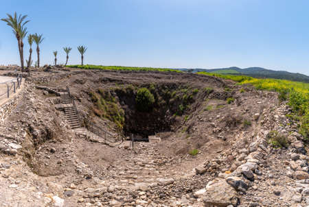 The stairs to the water system from the period of the Israelite kings. There are 187 steps down to the water system. Tel Megiddo National Park in Israel.