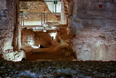 Archaeological excavations, human skeleton remains, found in an ancient tomb.