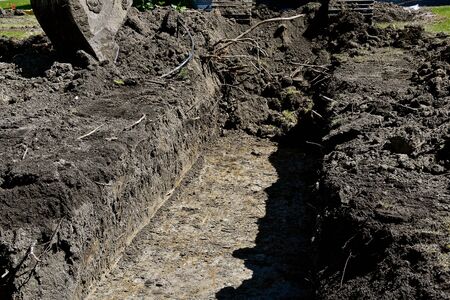 historical layer of the road, discovered during the expansion and repair of the road in Gatchina, Russia