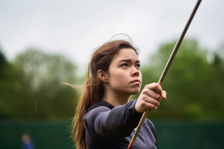 cropped shot of a young woman with disabilities preparing to throw a javelin, created with generative ai