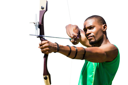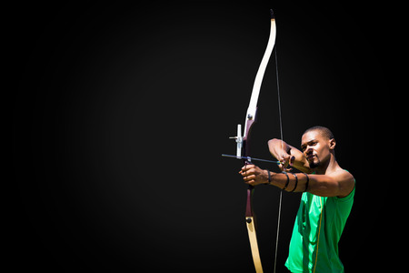 Archer aiming with bow for precision in professional sports summer olympics concept