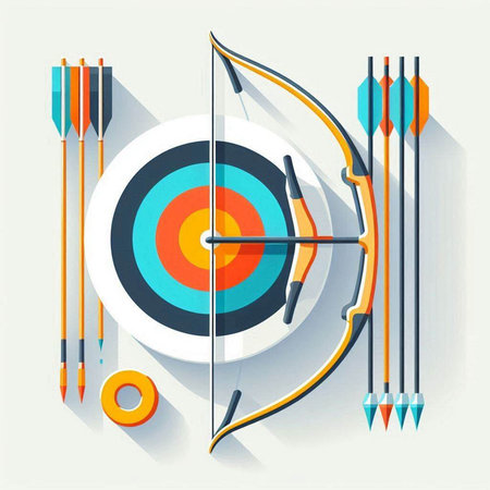 Archery sport concept with archery target and archer. Vector illustration