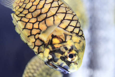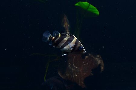 Beautiful Fish oreochromis tanganicae in aquarium close up.