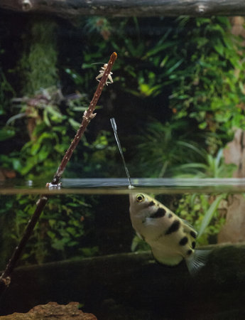 Archer fish or Blowpipe fish (Toxotidae) in aquarium. Wildlife animal.