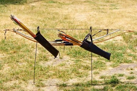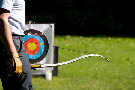 Archery training with a bow and arrow in an outdoor sports competition