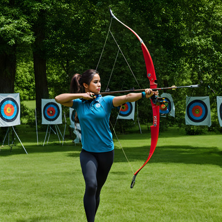 Dynamic archery shot, highlighting athleticism and motion, ideal for summer olympics concept.