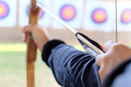 Close up view of man practicing archery