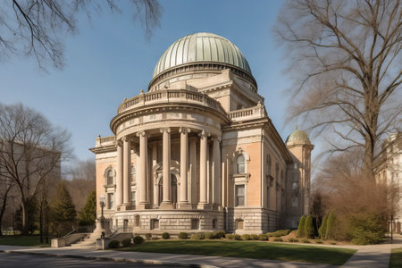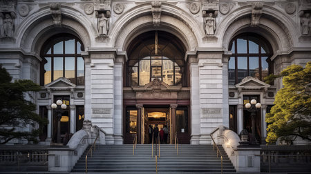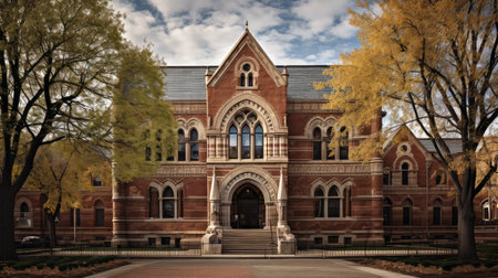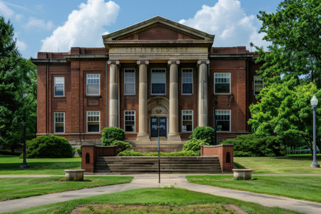 An AI generated illustration of a large, traditional building on a verdant lawn