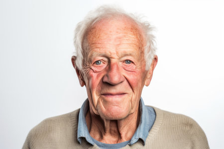 Portrait of a senior man with wrinkles on his face, white background