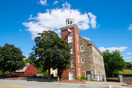 Historic Wilkinson Mill building in Old Slater Mill National Historic Landmark on Roosevelt Avenue in downtown Pawtucket, Rhode Island RI, USA.